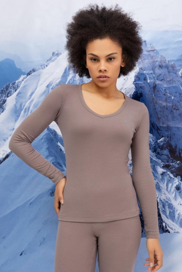 Функциональное термобельё женское - лонгслив с V-образной горловиной из современного термоматериала, изготовленного по австрийской технологии. Полые волокна полиэстера Trevira изолируют холод и сохраняют тепло, быстро реагируют на изменения температуры тела, предотвращая перегрев и переохлаждение. Вискоза Viloft эффективно впитывает и отводит влагу, а также придаёт нитям необычайную мягкость и прочность. Термолонгслив подходит для зимних прогулок и тренировок, охоты, рыбалки, занятий туризмом, фигурным катанием, горными лыжами или сноубордом. Джемпер термо можно использовать как нательный слой, он отлично облегает тело и не заметен под повседневной одеждой. Фактура материала бархатистая, тактильно приятная. Термоджемпер хорошо тянется и подходит на большие размеры.
