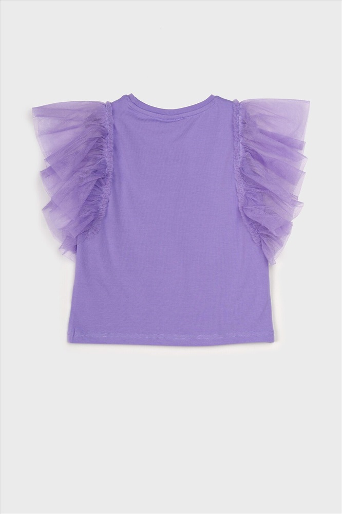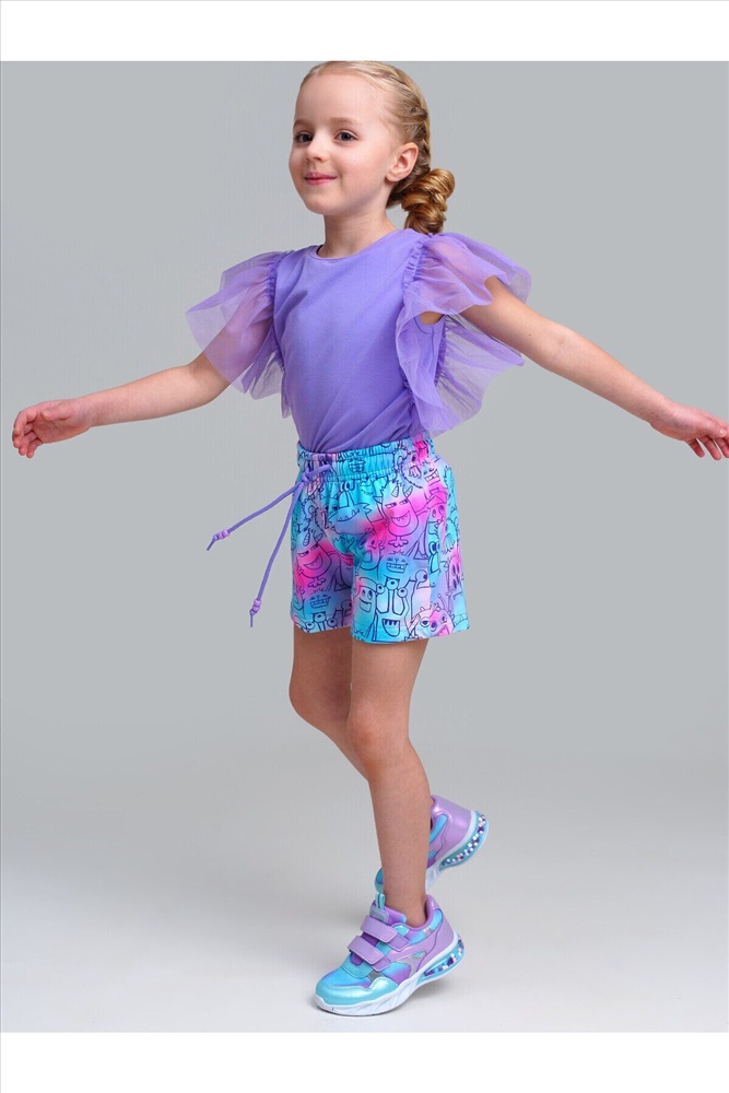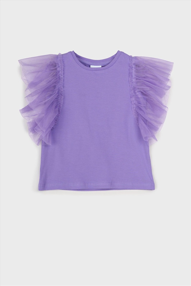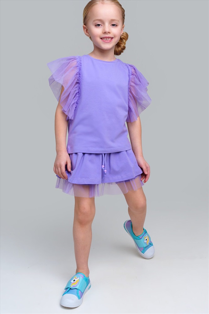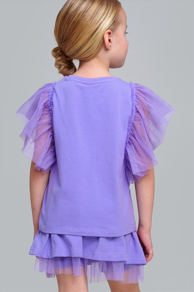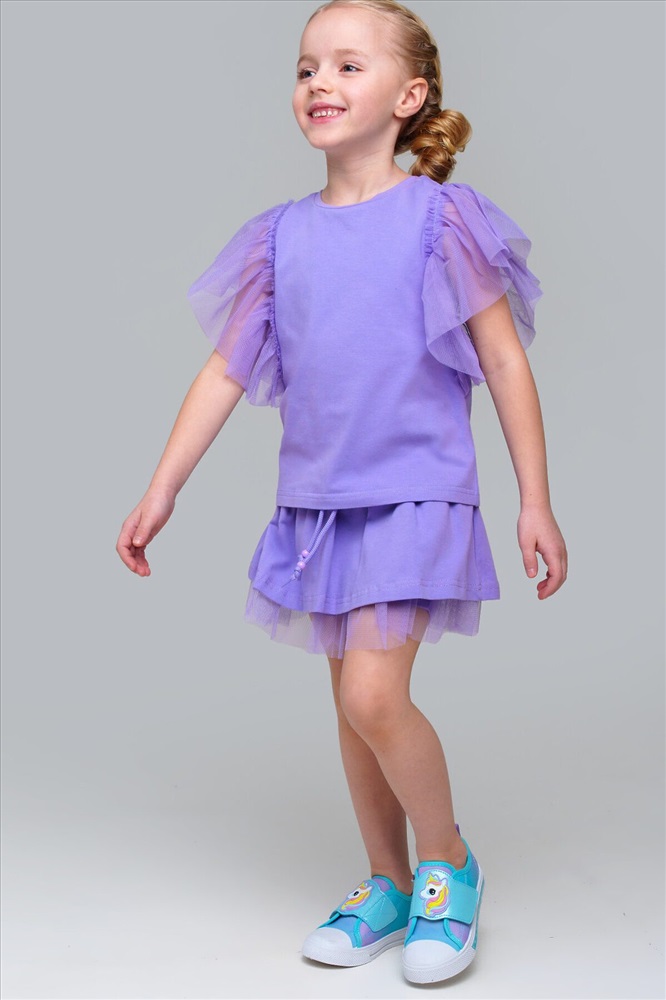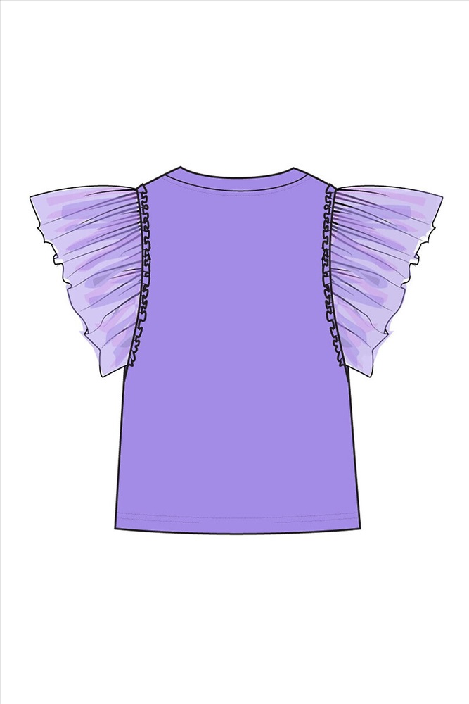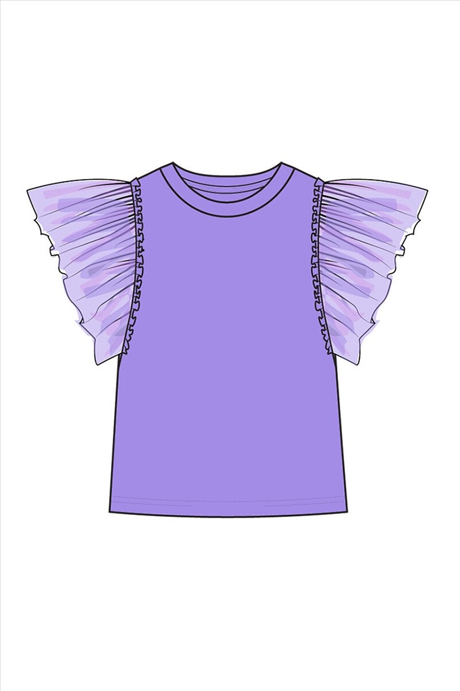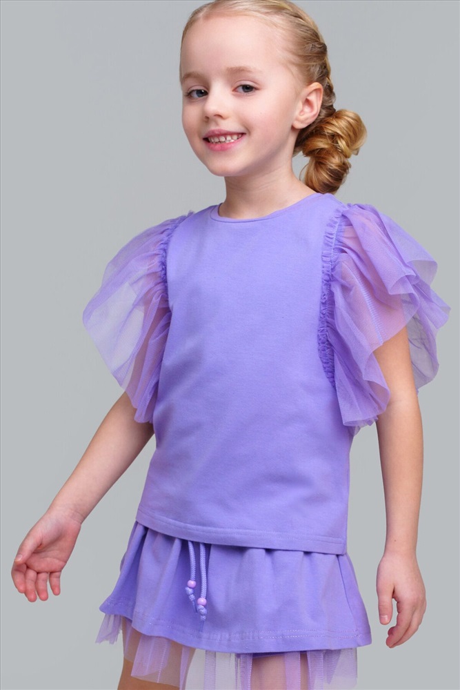 Футболка детская для девочки. Футболка с высоким содержанием хлопка 95%. Благодаря наличию эластана в составе ткани изделие проще в уходе и держит форму. Рукава-крылышки из сетки. Модель выполнена из качественного и приятного на ощупь трикотажа.