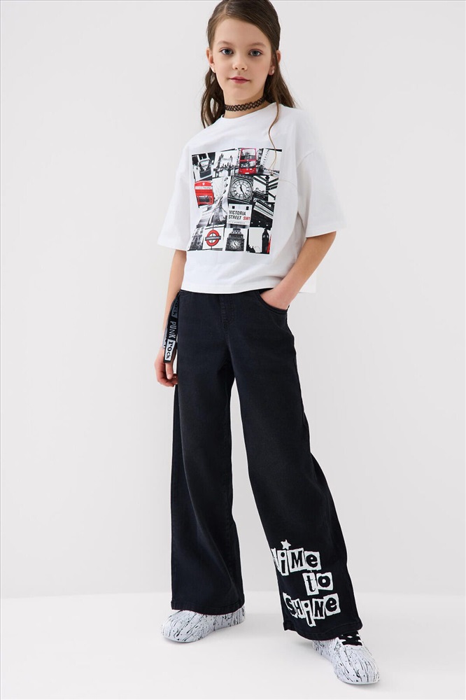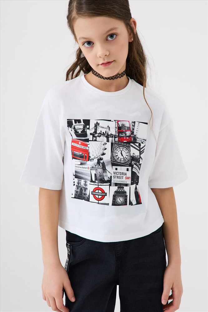 ID товара: 1239825 Состав: 95% хлопок, 5% эластан Сезон: Весна/Лето Футболка оверсайз для девочки подростка. Модель выполнена из эластичного хлопкового трикотажа джерси. На груди и спинке расположен красочный принт. Горловина круглая. Комментарии к товару