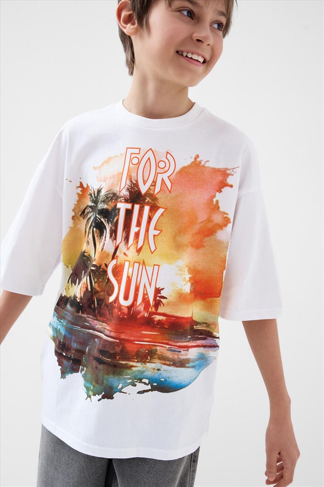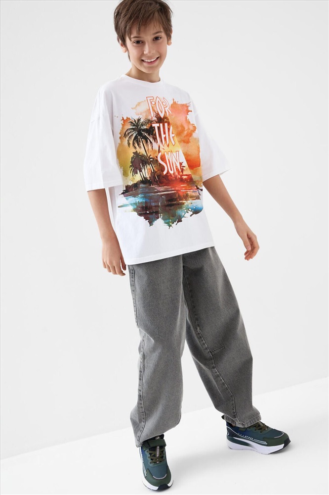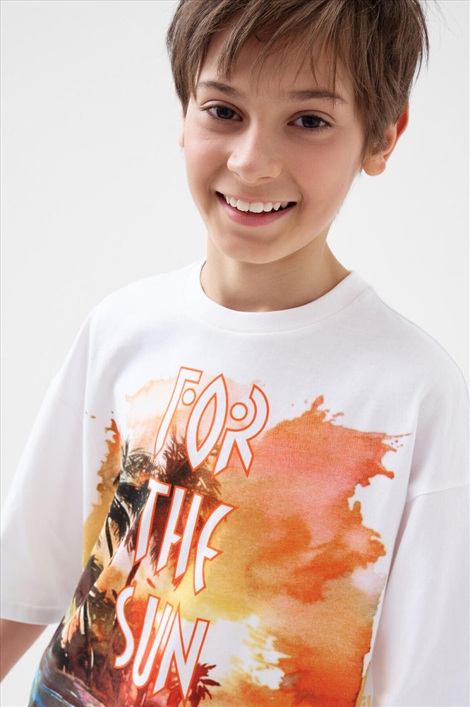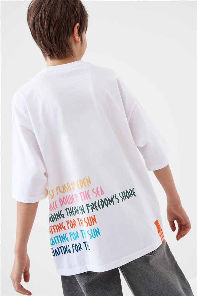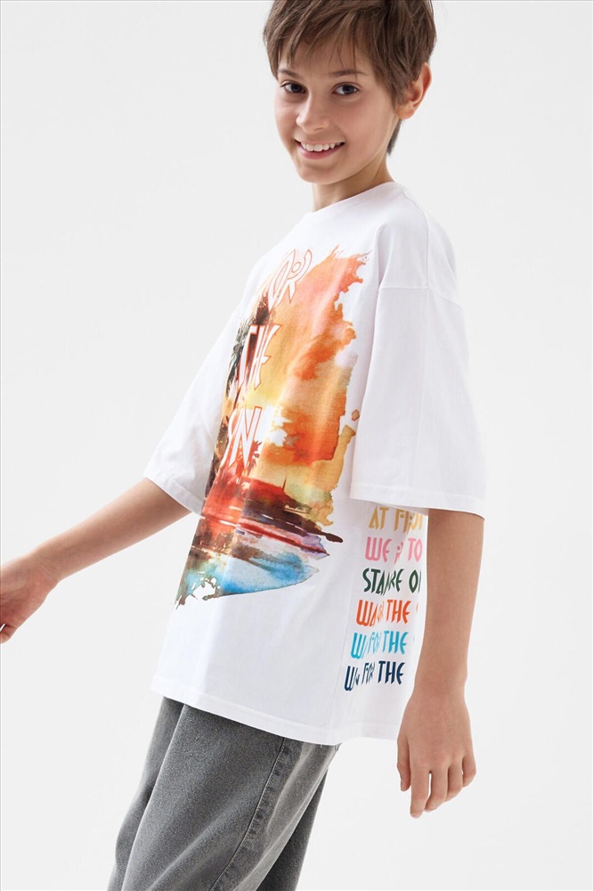 ID товара: 1242308 Состав: 100% хлопок Сезон: Весна/Лето Футболка оверсайз для мальчика подростка. Модель выполнена из эластичного хлопкового трикотажа джерси. Спереди расположен крупный красочный принт. Комментарии к товару