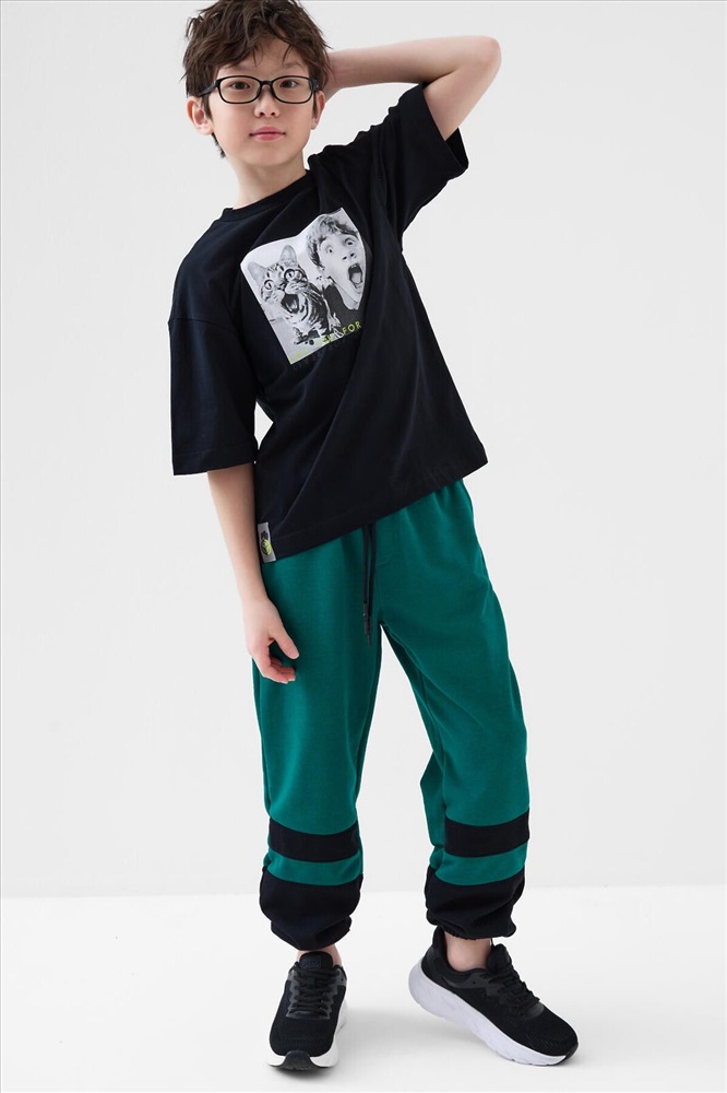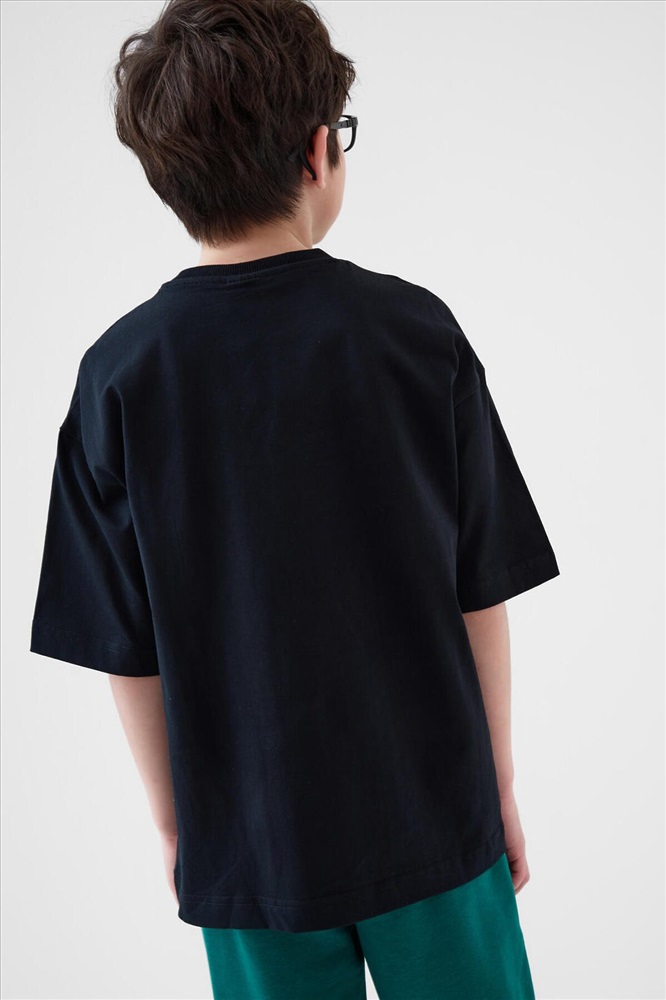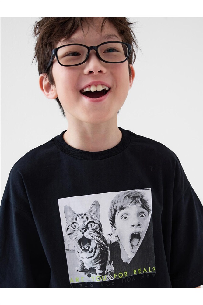 ID товара: 1242645 Состав: 95% хлопок, 5% эластан Сезон: Весна/Лето Футболка оверсайз для мальчика подростка. Модель выполнена из эластичного хлопкового трикотажа джерси. На груди расположен крупный принт с изображением мальчика и кота. Горловина круглая, обработана эластичным рибом. В нижней части — небольшая силиконовая нашивка. Комментарии к товару