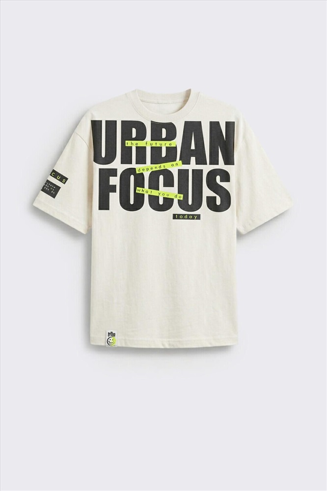 Футболка оверсайз для мальчика подростка. Модель выполнена из эластичного хлопкового трикотажа джерси. На груди расположен крупный принт. Горловина круглая, обработана эластичным рибом. В нижней части и на рукаве — небольшие нашивки.