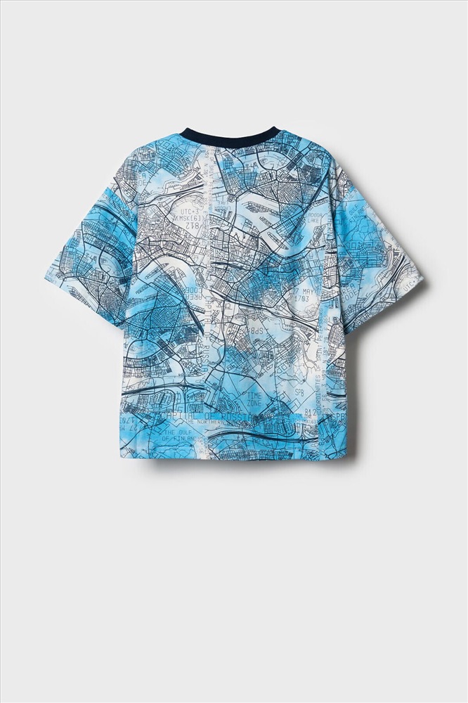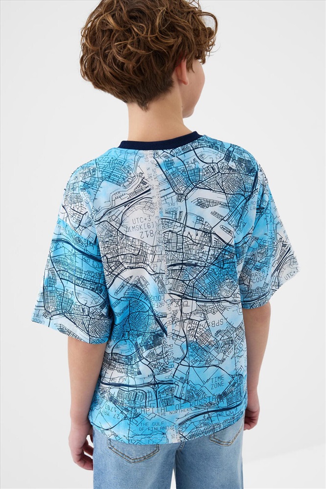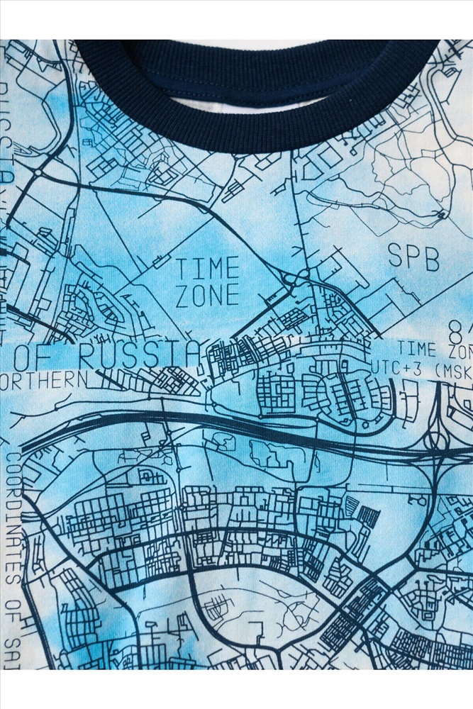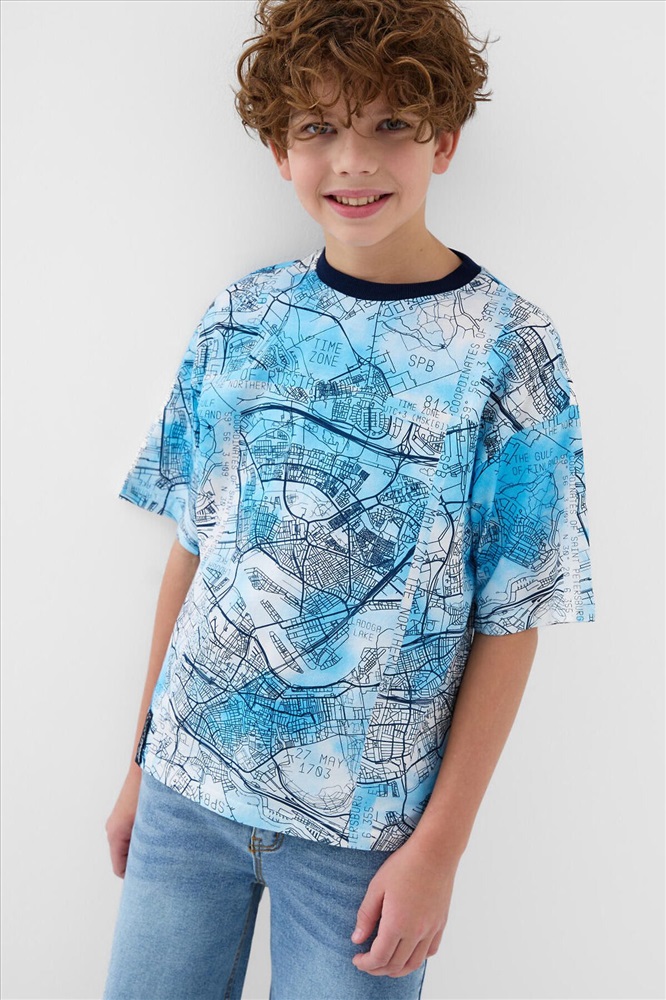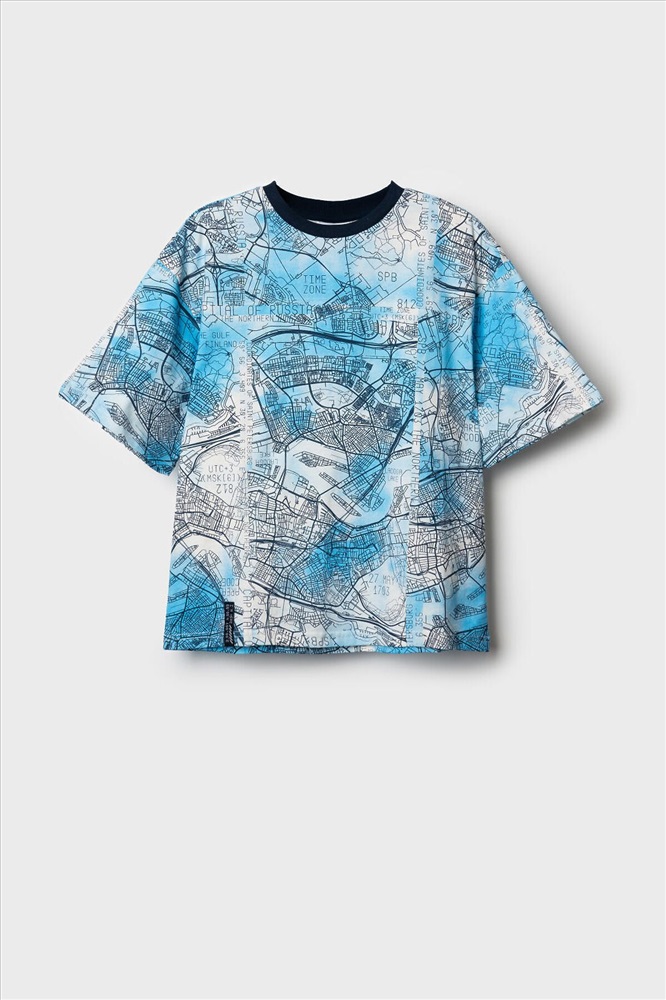 Футболка оверсайз для мальчика подростка. Модель выполнена из эластичного хлопкового трикотажа джерси. Красочный принт с картами Санкт-Петербурга. Горловина круглая, обработана эластичным рибом.