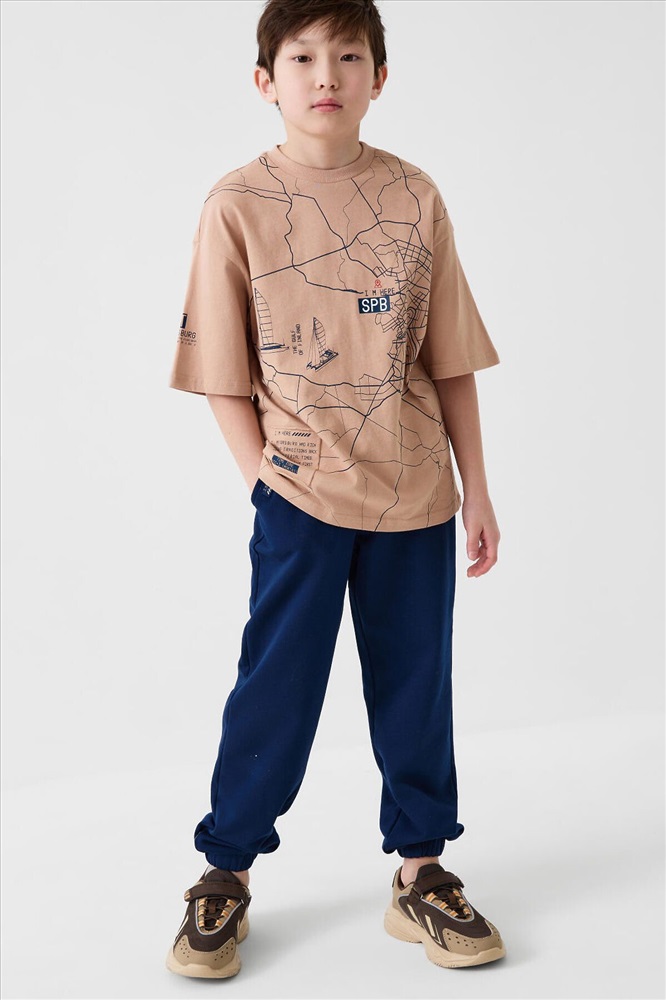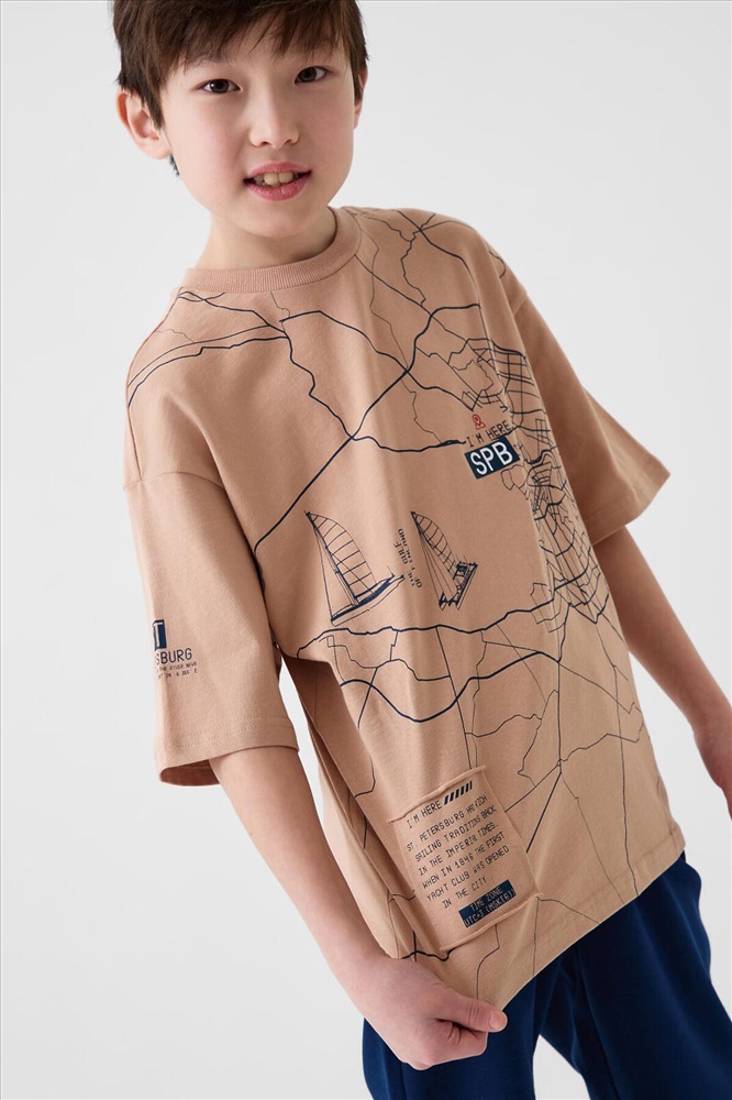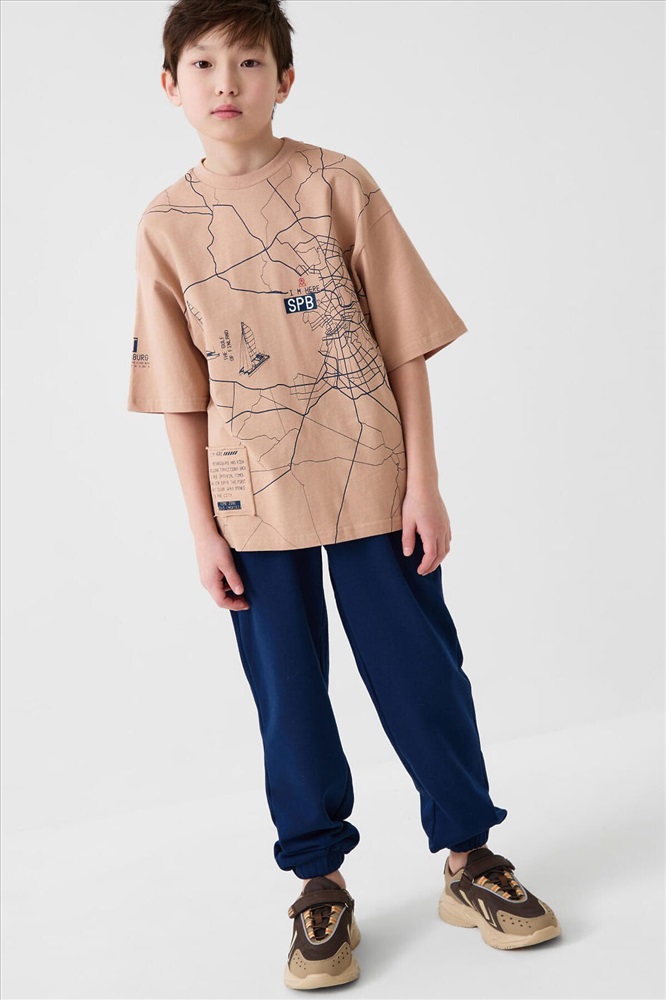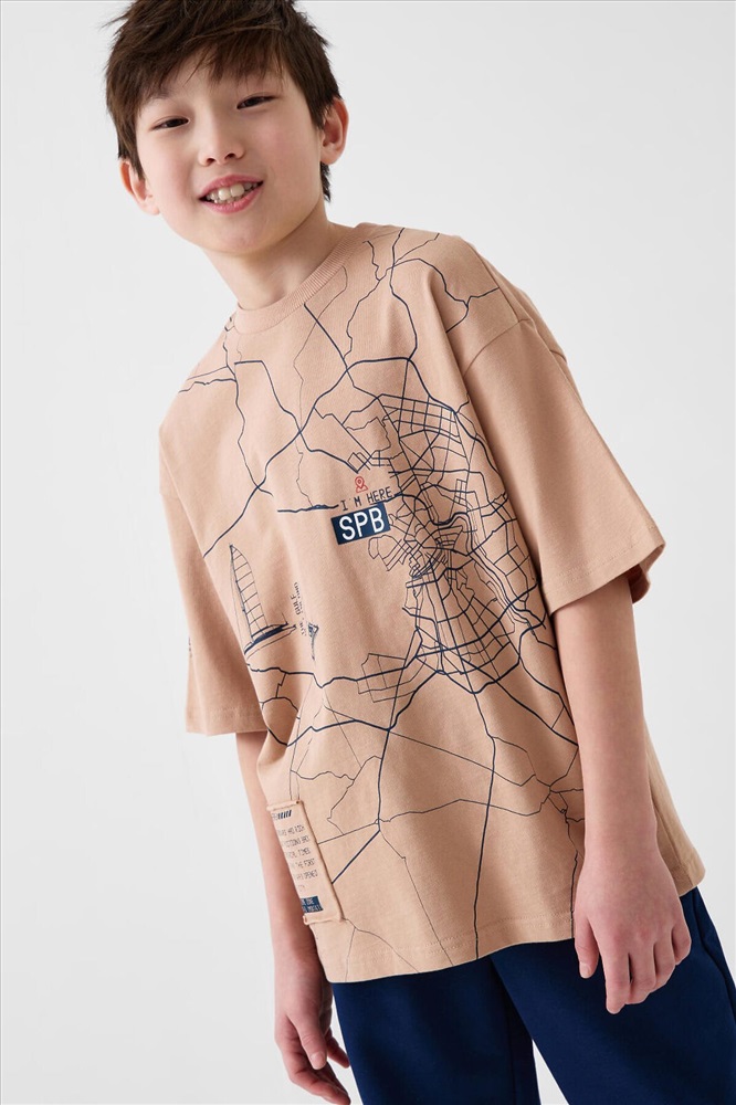 ID товара: 1243838 Состав: 100% хлопок Сезон: Весна/Лето Футболка оверсайз для мальчика подростка. Модель выполнена из эластичного хлопкового трикотажа джерси. Спереди расположен крупный принт с картой Санкт-Петербурга. Горловина круглая, обработана эластичным рибом. Комментарии к товару