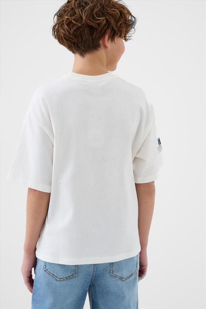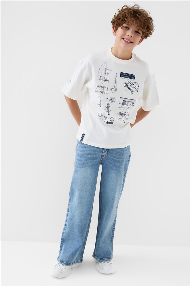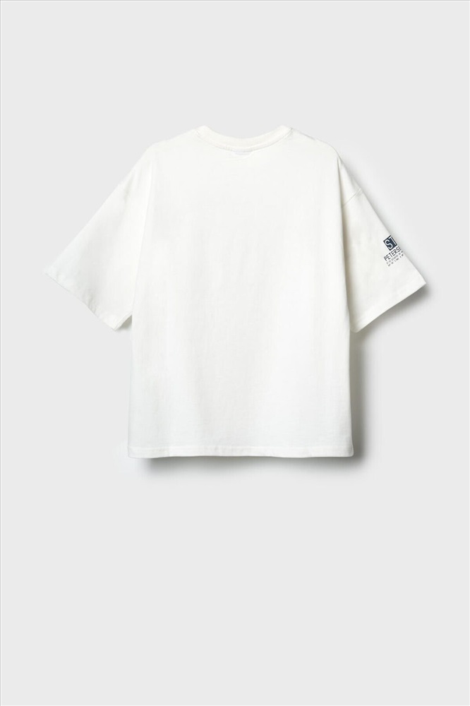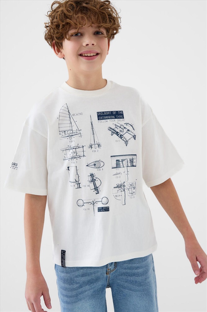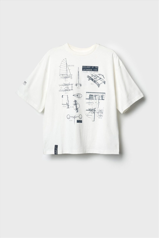 ID товара: 1243941 Состав: 100% хлопок Сезон: Весна/Лето Футболка оверсайз для мальчика подростка. Модель выполнена из эластичного хлопкового трикотажа джерси. Спереди расположен крупный принт, вдохновленный Санкт-Петербургом. Горловина круглая, обработана эластичным рибом. По низу - небольшая нашивка. Комментарии к товару