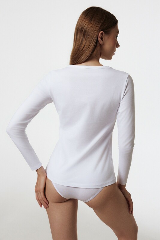 Классическая женская футболка с длинными рукавами LF 2023 из нежного хлопка. Идеально облегает фигуру, дарит ощущение комфорта и удобства. У него круглый вырез с отделкой. Он будет идеально сочетаться с юбкой-карандаш или джинсами. Особенности модели: