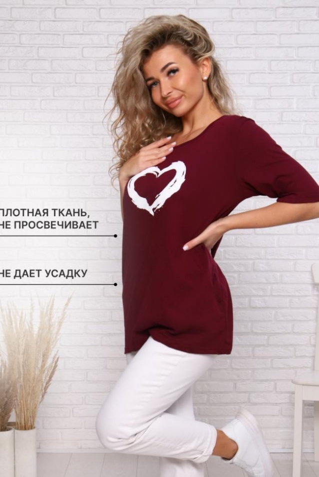 Футболка женская удлиненная с карманами и рисунком в виде сердца. Футболка с широким втачным рукавом, что делает его свободным и футболка не сковывает движений. Карманы на футболке очень практично и удобно, особенно, если носить ее с бриджима, леггинсами и велосипедками. Футболка свободного кроя из натурального дышащего хлопка - прекрасный базовый вариант одежды на любой сезон. Подходит в качестве домашней одежды, одежды на работу и для прогулок.