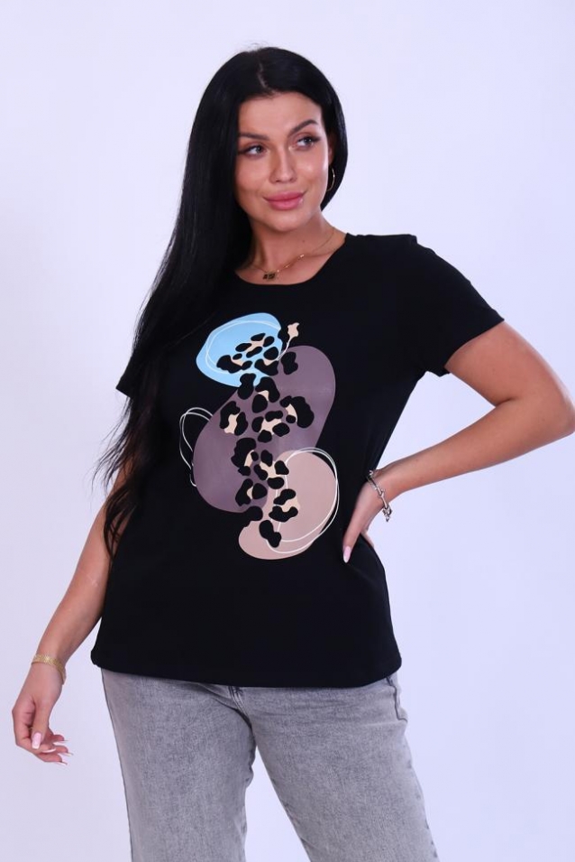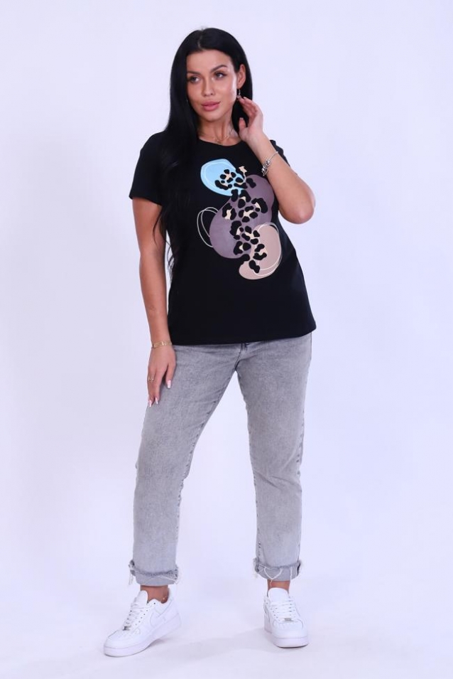 Футболка женская выполнена из хлопка с добавлением лайкры. Изделие приталенного кроя с короткими рукавами и округлым вырезом горловины. Благодаря стильному дизайну футболка с оригинальным принтом отлично смотрится в тандеме с джинсами, шортами, кедами, кроссовками или ботинками. Отличный вариант на каждый день! В любое время года станет незаменимой и любимой вещью.