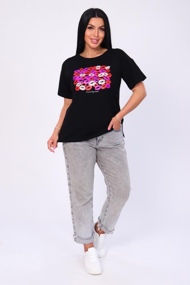 Женская футболка принт губы модель в стиле oversize, со спущенным плечом. Отлично смотрится на разных типах фигур. Футболка оверсайз идеально подходит для создания непринужденного образа. Модель выполнена из хлопка с добавлением лайкры высокого качества. Подходит для занятий спортом, для дома, а также как подарок на праздник, день рождения, юбилей, 8 марта, новый год. Принт сохраняется после множества стирок, ткань приятна к телу.