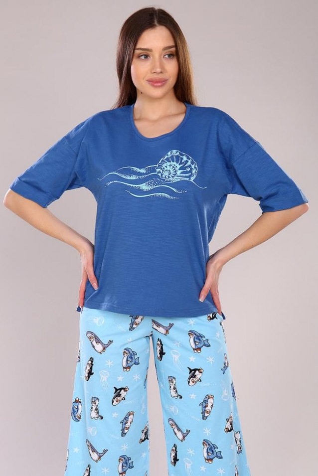 Расцветки: Индиго Ткань: Кулирка флам Состав: Хлопок 100% Размеры: 44