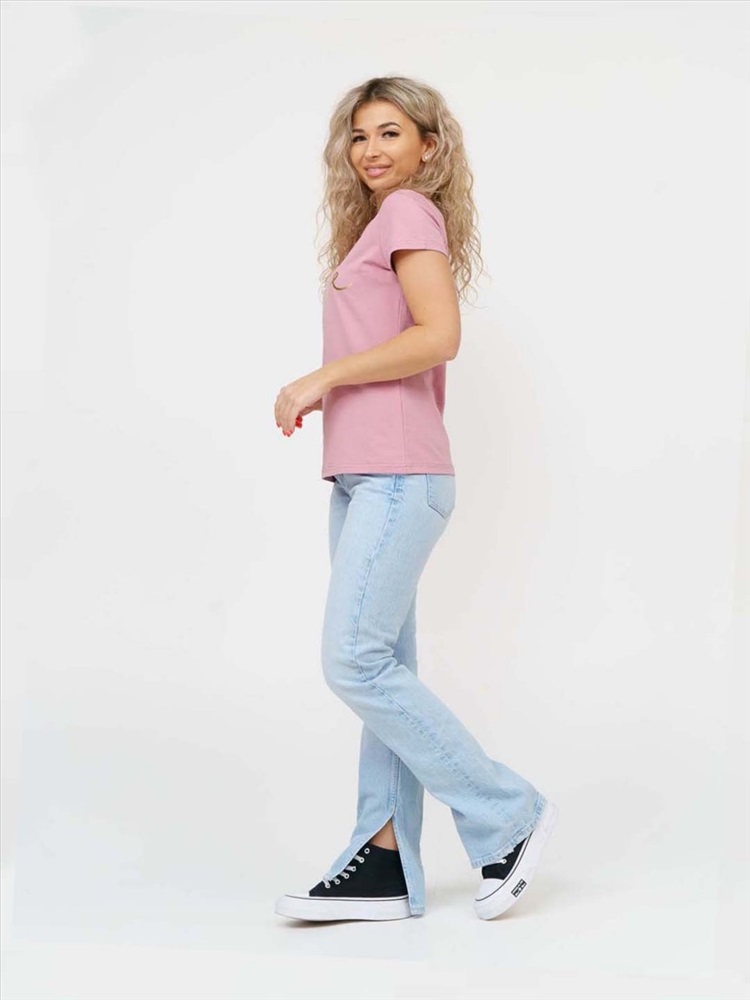 Базовая женская футболка, прямого силуэта, с О-образной горловиной и коротким рукавом. Представлена в 3 базовых цветах. Спереди печать на полочке. Комментарии к товару
