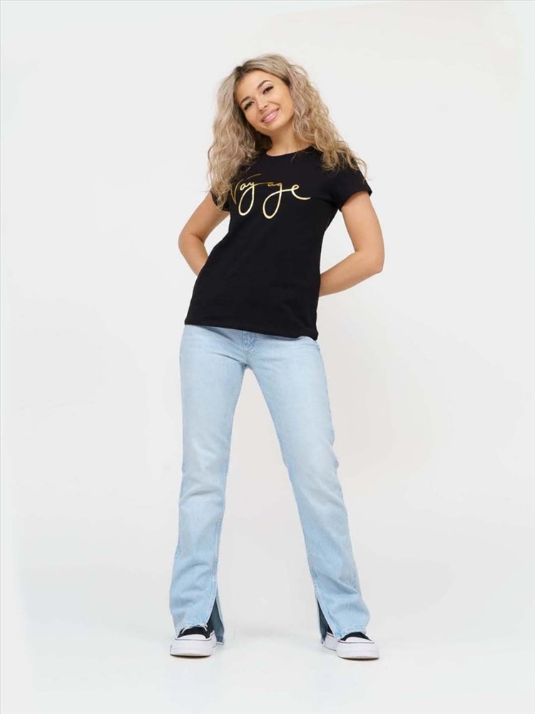 Базовая женская футболка, прямого силуэта, с О-образной горловиной и коротким рукавом. Представлена в 3 базовых цветах. Спереди печать на полочке. Комментарии к товару