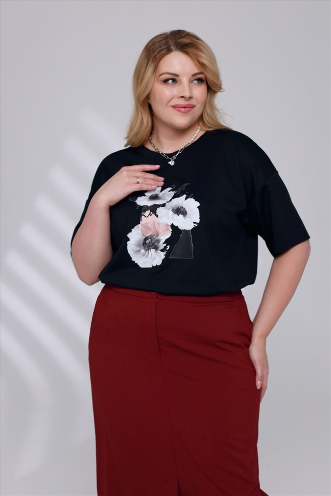 Футболка с рисунком на груди "цветы" черная