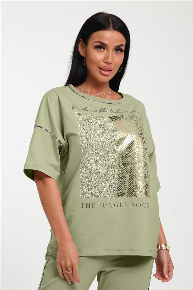 Трикотажная футболка премиум качества с модным принтом от NINEL. Модель выполнена из высококачественного кулирного волокна с лайкрой.