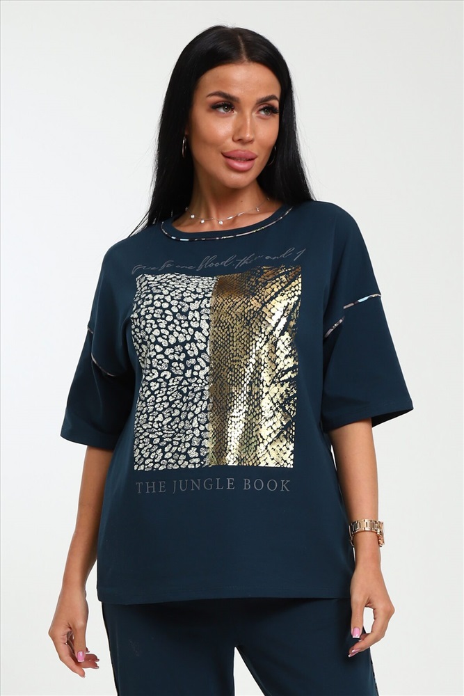 Страна производства: Россия Трикотажная футболка премиум качества с модным принтом от NINEL. Модель выполнена из высококачественного кулирного волокна с лайкрой.