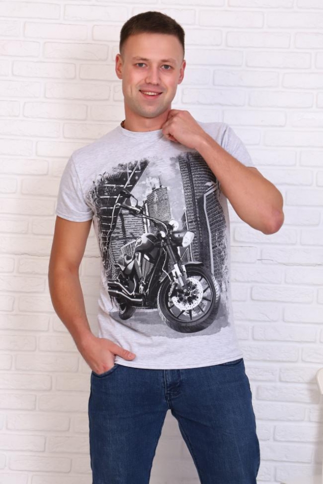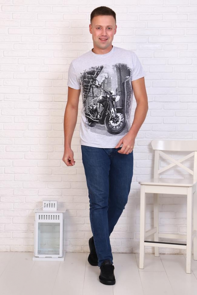 Футболка мужская с молодёжным принтом из эластичного трикотажа качества пенье. Круглая горловина обработана обтачкой, короткий рукав. Футболка прямого покроя, с усиленным плечевым швом, удобная, комфортная, незаменимая вещь в мужском гардеробе.