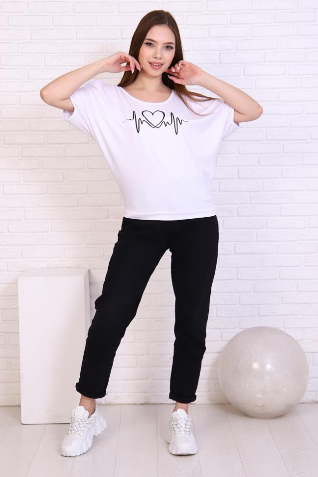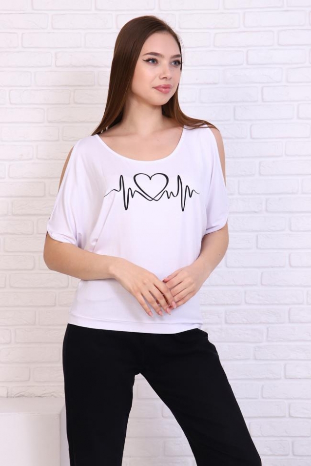 Футболка с молодёжным принтом из приятной к телу вискозы. Модель летучая мышь в стиле ОВЕРСАЙЗ, с глубоким декольте, большими разрезами по рукаву, что придаёт изделию некую изюминку и привлекательность. Низ футболки обработан широким манжнтом. Отличный вариант для летнего гардероба.