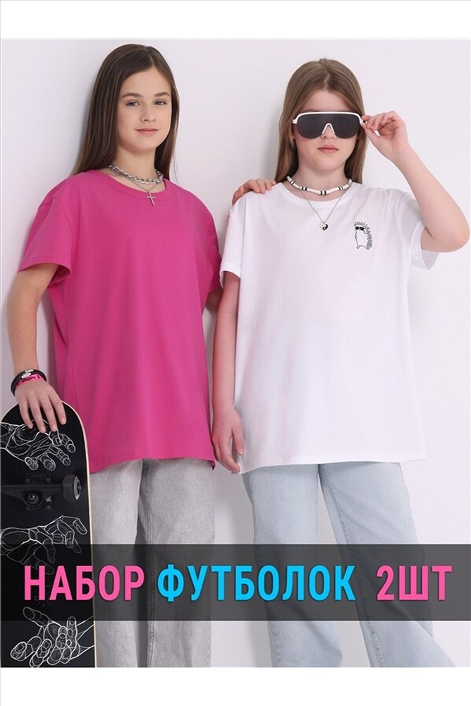 ID товара: 980772 Акции: -16%, до 01.12.2025 Состав: Хлопок 100% Сезон: Весна/Лето Длина: Средняя Фасон: Оверсайз Рукав: Короткий Вырез горловины: Круглый Рисунок: Фантазийный Тип карманов: Без карманов Основная ткань: Хлопок Стиль: Повседневный Страна бренда: Россия Страна производства: Россия Комплект из двух футболок оверсайз для девочки выполнен из кулира - легкого хлопкового полотна. Комментарии к товару