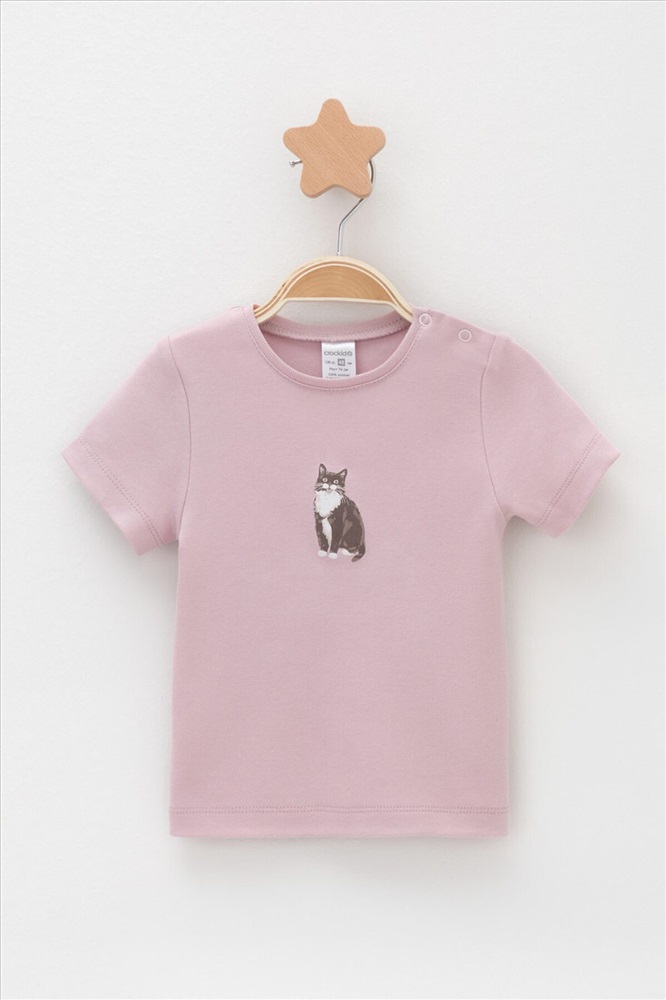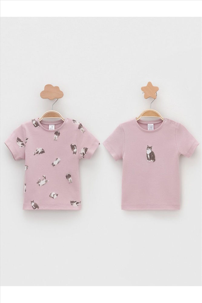 Футболки для девочки в упаковке 2 шт из высококачественного трикотажного полотна. Оригинальная набивка выполнена из стойких гипоаллергенных текстильных красителей. Для удобства на плече застежка на кнопки.