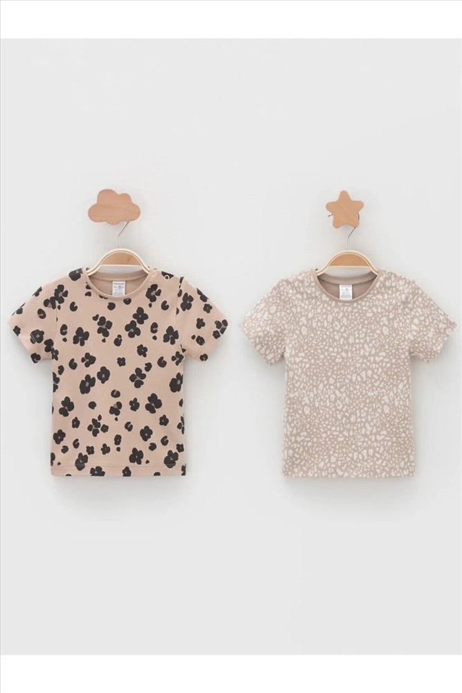 Футболки для девочки в упаковке 2 шт из высококачественного трикотажного полотна. Оригинальная набивка выполнена из стойких гипоаллергенных текстильных красителей. Для удобства на плече застежка на кнопки.