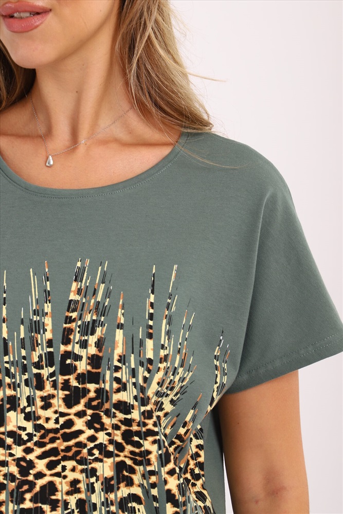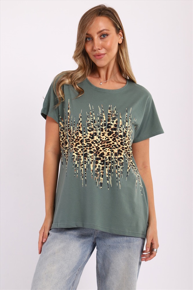 ID товара: 1205521 Состав: 100% Хлопок Сезон: Демисезон Длина: Средняя Фасон: Свободный Рукав: Короткие Вырез горловины: Округлый Рисунок: леопардовый Декоративные элементы: Принт Основная ткань: Хлопок Стиль: повседневный Вид ткани: Кулирка пенье Страна бренда: Россия Страна производства: Россия Представляем стильную и комфортную футболку, идеально подходящую для домашнего ношения или летних выходов. Изготовленная из высококачественного хлопка, эта нарядная модель обеспечивает невероятное ощущение комфорта и свободы движений. Футболка выполнена в нежных оттенках, что придает ей свежесть и гармонию. Удлиненная конструкция подчеркивает силуэт, создавая стильный образ. Дизайн дополнен ярким принтом, который включает цветочные элементы и графические акценты. Это придает изделию оригинальность и делает его отличным выбором для модных образов. Свободный крой позволяет сочетать эту модель с различными вещами: от джинсов до легких шорт. Короткие рукава обеспечивают дополнительную вентиляцию, что делает ее идеальной для жарких летних дней. Текстура материала приятна на ощупь и обеспечивает комфорт в носке на протяжении всего дня. Это изделие отличается высоким качеством пошива, что гарантирует долговечность и устойчивость к износу. Премиум материал сохраняет свои свойства даже после множества стирок, оставаясь ярким и привлекательным. Эта футболка отличный выбор как для повседневной носки, так и для создания более нарядных образов с минимальными усилиями. Благодаря своим визуальным характеристикам она станет замечательным дополнением вашего гардероба и позволит вам выглядеть стильно в любой ситуации. Носите с удовольствием! Комментарии к товару