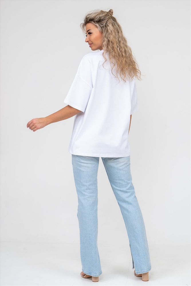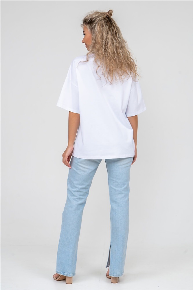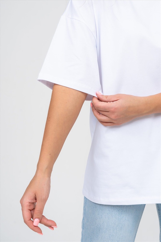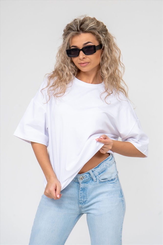 ID товара: 908433 Состав: 100% Хлопок Сезон: Весна/Лето Длина: Средняя Фасон: Оверсайз Рукав: короткие Вырез горловины: Округлый Основная ткань: Хлопок Стиль: Базовый Вид ткани: Кулирка Страна бренда: Россия Страна производства: Россия Футболка женская oversize с коротким рукавом выполнена из качественного 100% хлопчатобумажного полотна. Такая ткань мягкая на ощупь, прекрасно гладится и стирается, а так же хорошо подходит людям, склонным к аллергиям. Да и просто надеть свободную хлопковую футболку - это приятно. Она идеально подходит как для офиса, так и для прогулок, повседневного стиля, свиданий, встреч, для подарка, для школы, университета, для спорта и путешествий. Это базовый предмет гардероба, который можно сочетать с разными брюками, юбками и джинсами, создавая разнообразные образы. Футболка имеет округлый вырез горловины и спущенный тип рукава, что делает её ещё более комфортной и приятной для носки. Она также идеально подходит для женщин и девушек с разным типом телосложения и роста. В целом классическая базовая футболка - это идеальный выбор для тех, кто ценит комфорт, качество, и для тех, кто хочет добавить в свой гардероб универсальный и стильный предмет одежды. Ориентируясь по таблице замеров, обратите внимание, что замеры длины рукава проводились от точки основания шеи. Комментарии к товару