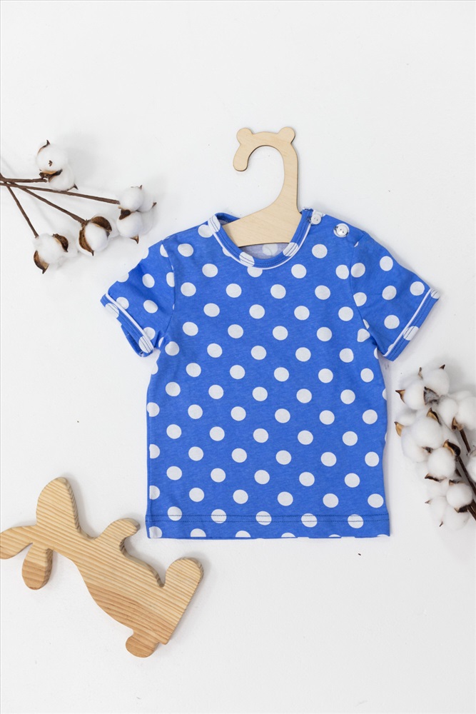 Сезон: Всесезонный Состав: Хлопок 100% Цвет Номенклатуры: васильковый Футболка из кулирки, 100% хлопок. С коротким рукавом. На левом плече застежка на пуговицы. Горловина и низ рукавов обработаны бейкой с кантом. Комментарии к товару