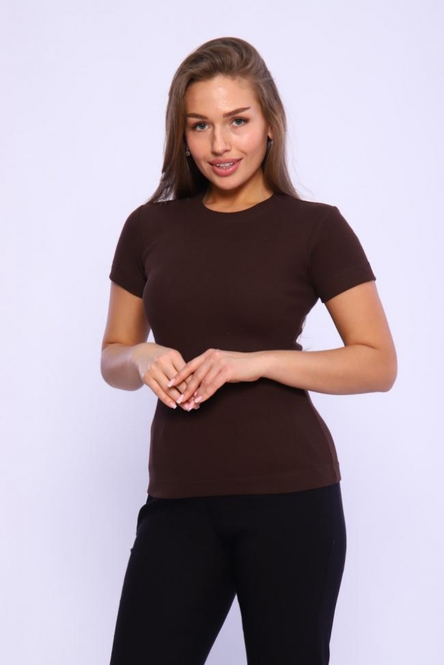 Футболка женская из кашкорсе. Ворот футболки обработан обтачкой, низ и рукава обработаны на плоскошовной машине. Идеальный вариант для повседневной носки. Хорошо тянется. *Замеры могут немного отличаться, в зависимости от сжатия нитей полотна.