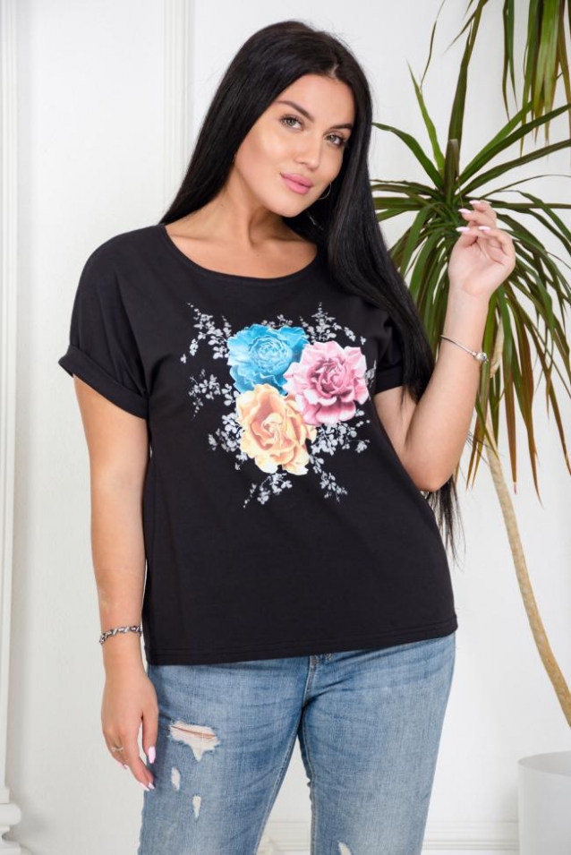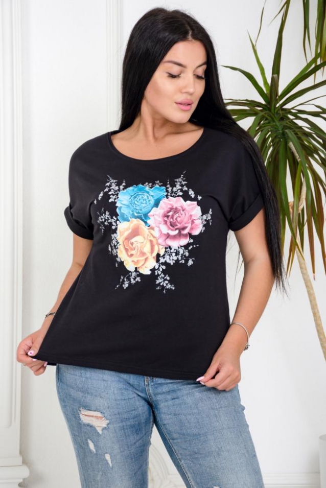 Футболка - незаменимый спутник женщин в летнее время. Состав - 100% хлопок. Свободный силуэт. Цельнокроенный рукав с манжетой. Принт в нежных тонах с листочками из искрящегося глиттера серебром. Прекрасно сочетается с джинсами и шортами, юбками и комбинезонами.