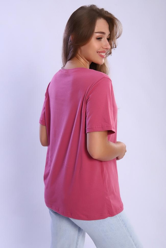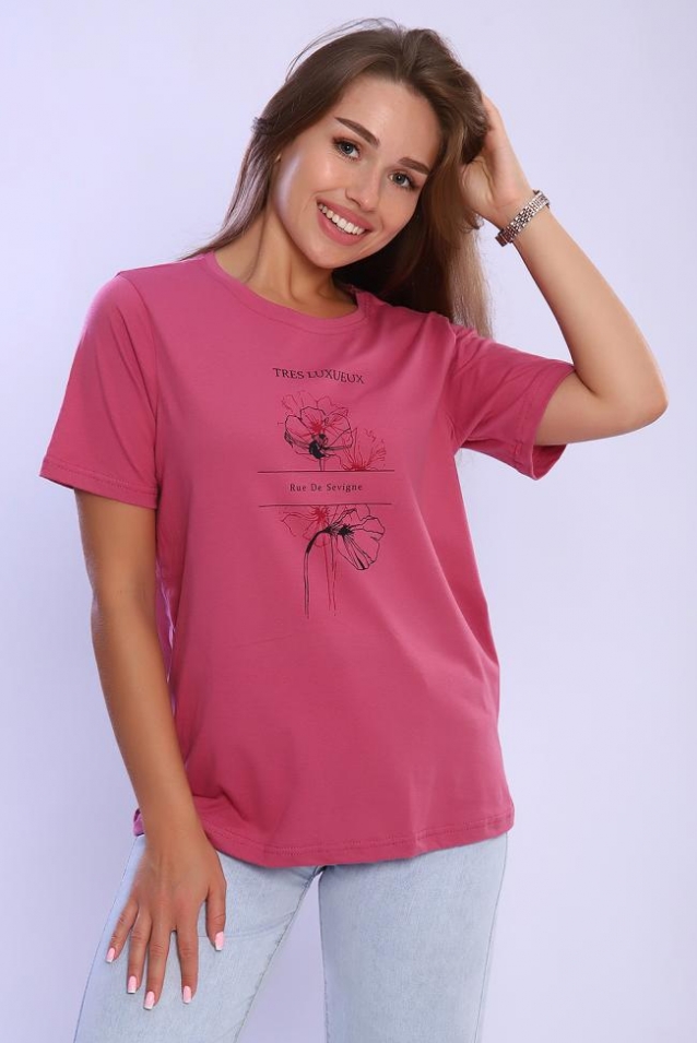 Женская футболка с круглым вырезом горловины и короткими рукавами. Такая модель подойдет абсолютно всем и станет необходимой вещью в вашем гардеробе.