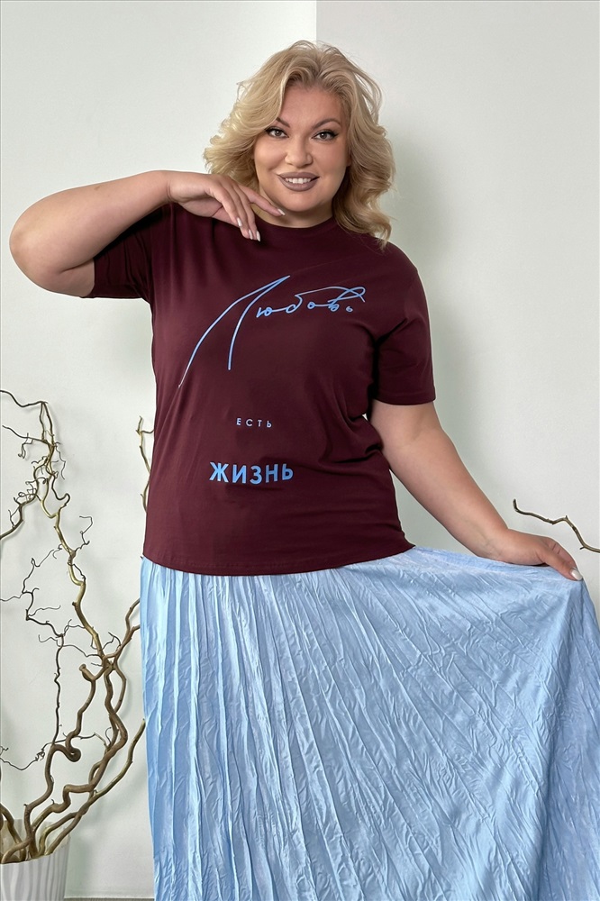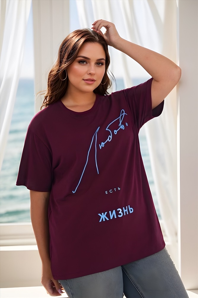 Футболка прямого кроя из мягкого трикотажа. Модель имеет круглый вырез с узким кантом и короткие приспущенные рукава. Свободный силуэт искусно обыгрывает фигуру и не сковывает движений. Актуальная надпись на груди освежает образ и добавляют нарядности. Модель легко сочетается с любым низом, поэтому скомбинировать чудесный и стильный образ с легинсами, брюками, шортами и джинсами не составит труда.