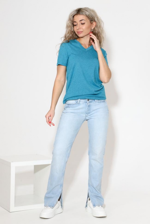 Футболка женская, короткий рукав, ткань кулирка. Полуприлегающий силуэт, вырез горловины углом. Подходит для ежедневного гардероба. Может сочетаться с брюками, джинсами и юбками.
