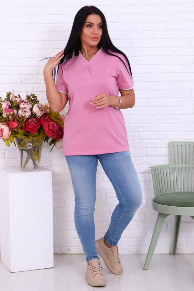 Футболка женская из ткани кулирка с лайкрой качество пенье. Стильная и современная футболка, с контрастной отделкой на воротнике и рукавах., вырез оформлен планкой. Подойдет для отдыха, дома и повседневной носки. Футболка не деформируется, не меняет цвет после стирки.