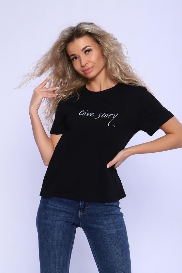 Футболка классического фасона, прямого кроя, с коротким рукавом и округлым вырезом. Декорирована принтом. Универсальная модель футболки отлично подойдет для любого образа и станет необходимой вещью в вашем гардеробе. Обращаем Ваше внимание, что расцветка индиго может незначительно отличаться от представленного на фото.