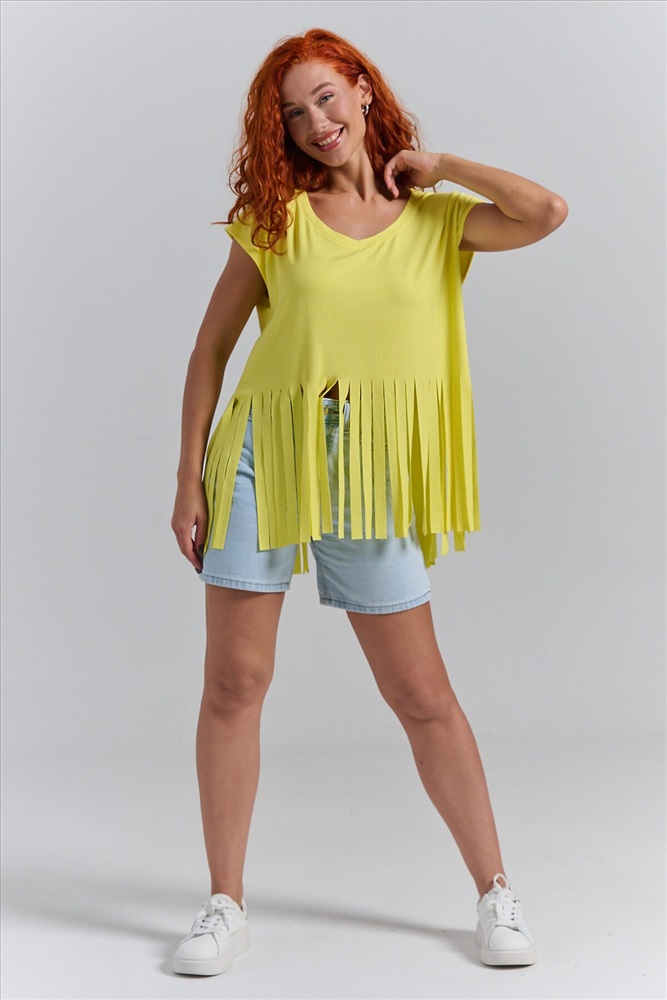 Футболка оверсайз женская с бахромой прекрасно подойдет для повседневной носки и для создания стильного образа.