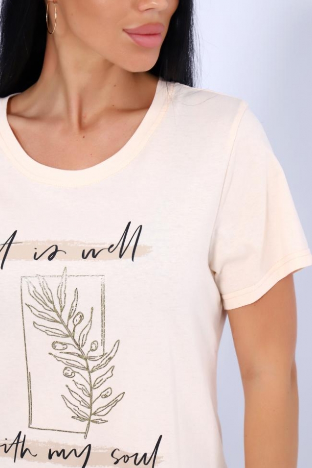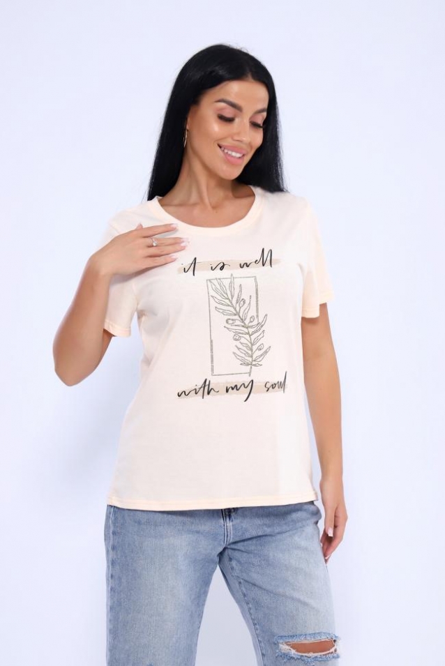 Прекрасный вариант для летнего отдыха и комфортного лука на каждый день! Нежные, пастельные расцветки и принт с французским блеском придают стиль и шарм. Футболка изготовлена из мягкого 100% хлопка. Фасон приталенный. Горловина обработана обтачкой с последующей отстрочкой. Рукава и низ изделия в подгибку. Маломерит на размер!