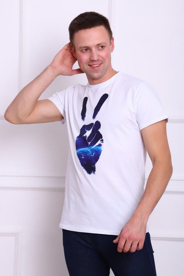 Футболка мужская с молодёжным принтом из мягкого хлопкового трикотажа. Футболка прямого кроя, круглая горловина обработана эластичной рибаной, втачной короткий рукав. Футболка - это базовый, незаменимый элемент мужского гардероба.