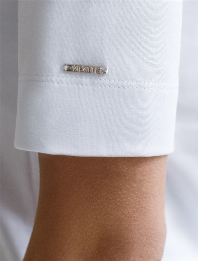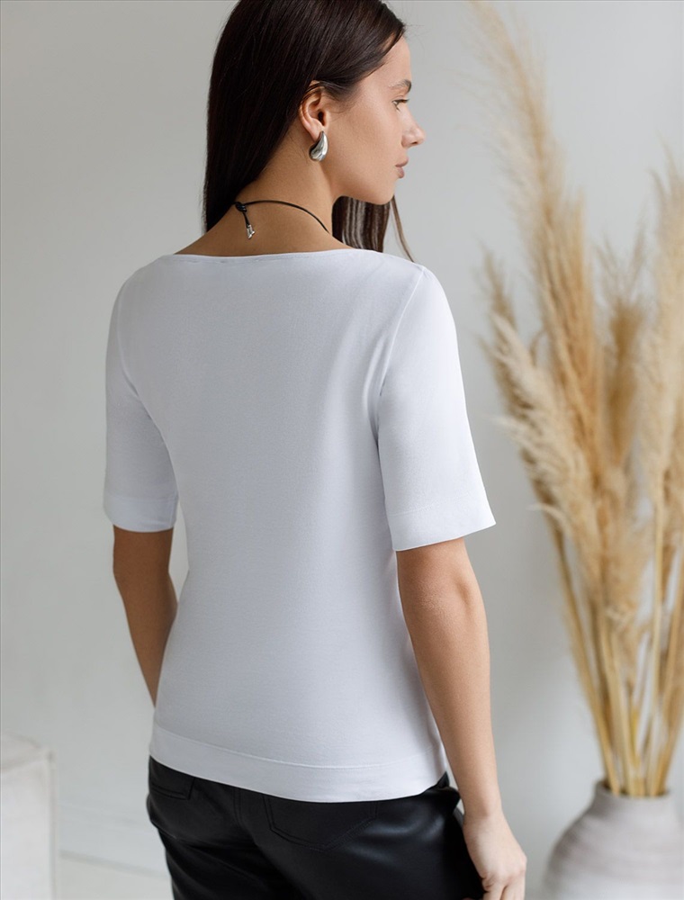 Футболка выполнена из премиального хлопка с добавлением эластана.Гладкий трикотаж обеспечит гарантированный комфорт и удобство в использовании. На рукаве металлическая нашивка с логотипом бренда. Издели будет хорошо сочетаться с любыми низами, жилетками и кардиганами, став выгодной инвестицией в базовый гардероб.