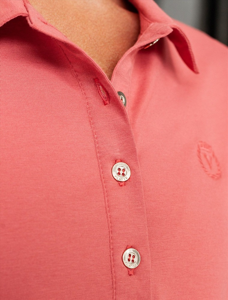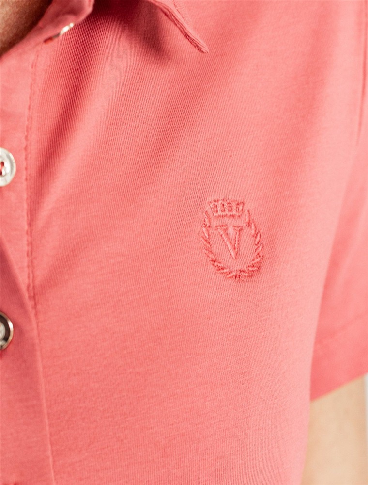 Футболка-поло выполнена из премиального хлопка. Модель украшена золотистыми пуговицами и вышитым логотипом бренда. Успешная классика на все времена. За счет эластана в составе, идеально держит форму и сохраняет внешний вид в течение договременного использования. Унивесально сочетается как с костюмными низами в деловом стиле, так и с джинсами в повседневном образе.