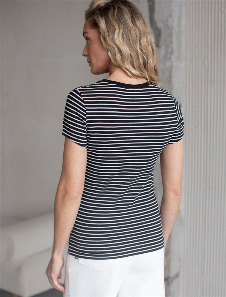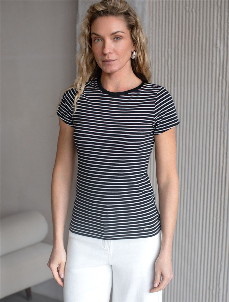 Футболка облегающая в тонкую черно-белую полоску из премиального хлопка с эластаном