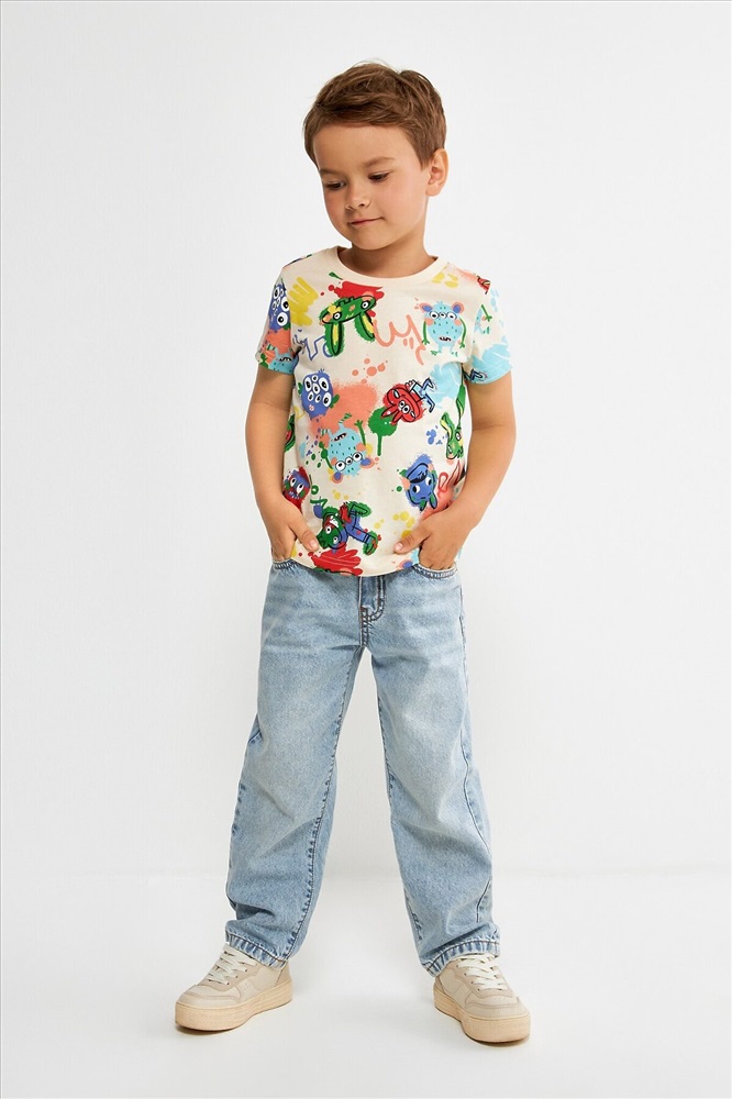 ID товара: 1123890 Состав: 100% Хлопок Сезон: Весна/Лето Длина: Средняя Фасон: Прямой Рукав: Короткий Вырез горловины: Круглый Рисунок: Фантазийный Основная ткань: Хлопок Стиль: Спортивный Страна бренда: Россия Страна производства: Китай Футболка детская для мальчиков Tirana разноцветный. Комментарии к товару