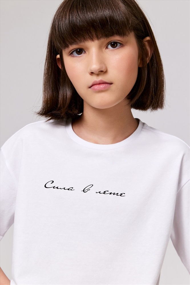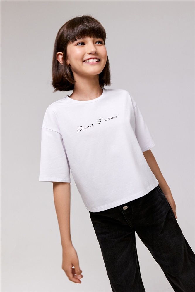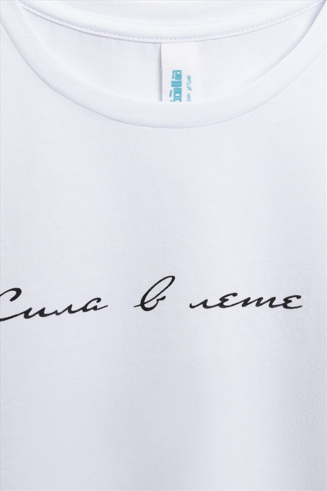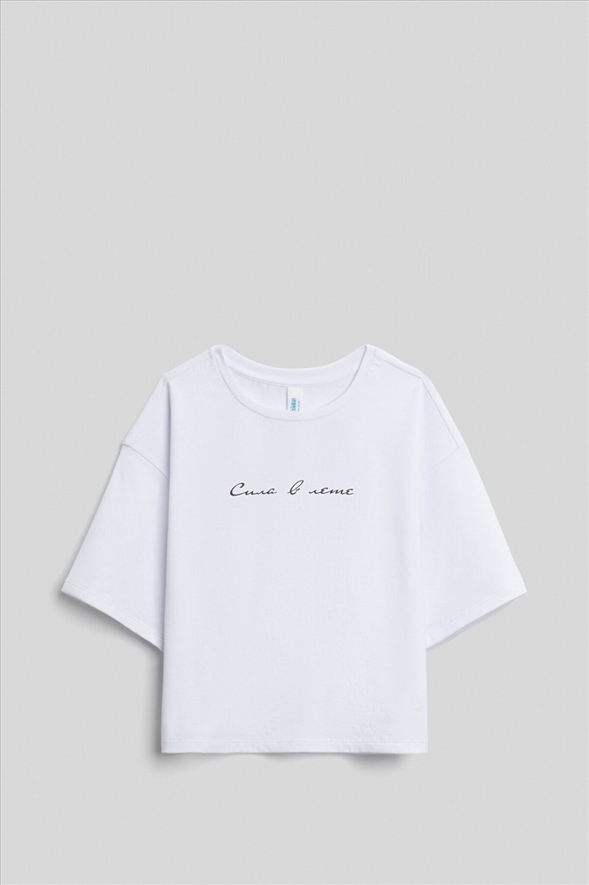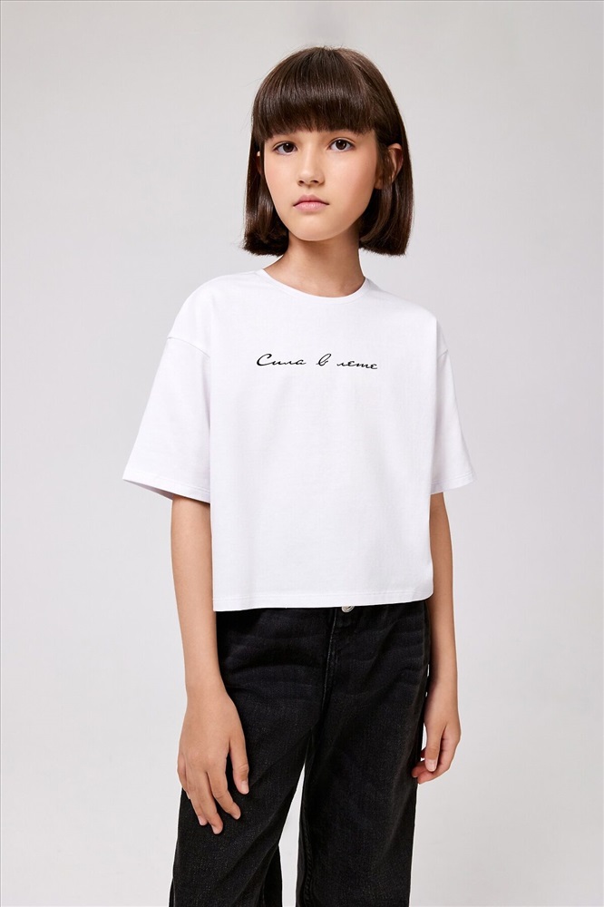 Производитель: ACOOLA ID товара: 1133672 Состав: 95% Хлопок, 5% Полиуретан Сезон: Весна/Лето Длина: Укороченная Фасон: Прямой Рукав: короткие Вырез горловины: Округлый Рисунок: Надпись Декоративные элементы: Принт Основная ткань: Хлопок Стиль: повседневный Страна бренда: Россия Страна производства: Китай