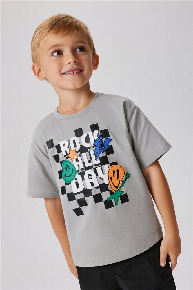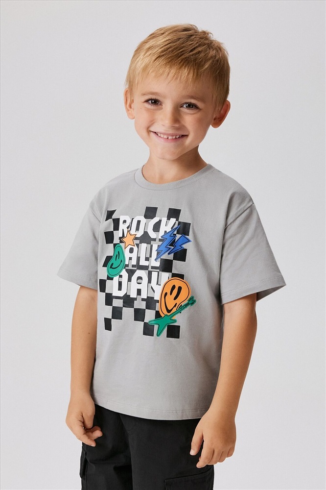 ID товара: 1212387 Состав: 100% Хлопок Сезон: Демисезон Длина: Средняя Фасон: Прямой Рукав: короткие Вырез горловины: Округлый Рисунок: Надпись Декоративные элементы: Принт Основная ткань: Хлопок Стиль: повседневный Страна бренда: Россия Страна производства: Китай Футболка детская для мальчиков Turner светло-серый Комментарии к товару