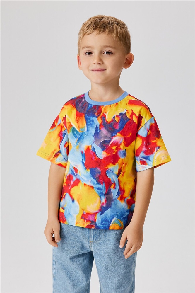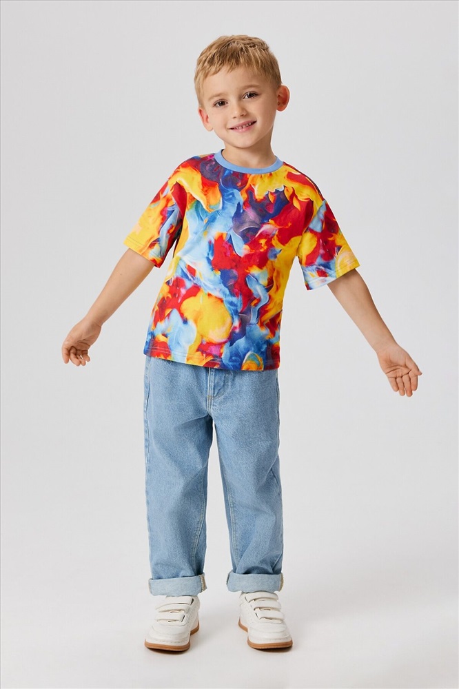 ID товара: 1220673 Состав: 100% Хлопок Сезон: Демисезон Длина: Средняя Фасон: Прямой Рукав: короткие Вырез горловины: Округлый Рисунок: Абстракция Декоративные элементы: Принт Основная ткань: Хлопок Стиль: повседневный Страна бренда: Россия Страна производства: Китай Футболка детская для мальчиков Noel ярко-оранжевый Комментарии к товару