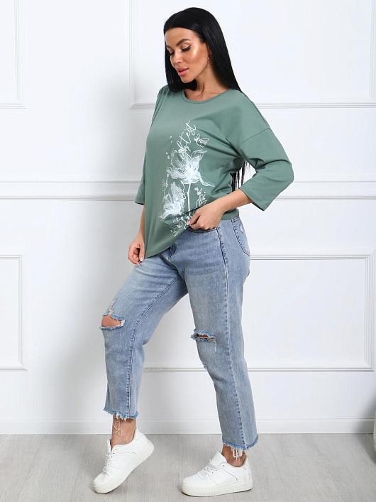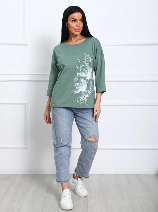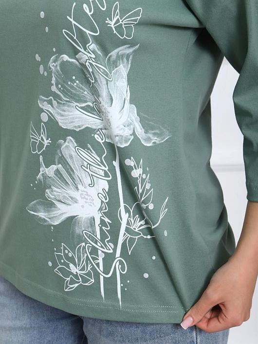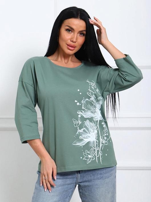 Футболка женская с растительным принтом , из натурального трикотажа. Отличный вариант одежды, который позволяет скрыть все недостатки фигуры и подчеркнуть достоинства.Мягкие линии делают эту модель очень женственной. Горловина круглой формы. Полуприлегающий силуэт, рукав три четверти. Принт нанесен непосредственно в ткань футболки - не наклейка. Данный принт выделит Вас среди других девушек. Комментарии к товару