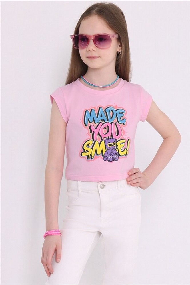 Стильная короткая футболка для девочки из кулира - тонкого хлопкового полотна. Изделие прямого силуэта, с укороченными рукавами и округлым вырезом горловины, украшено ярким принтом. Отличный выбор для летнего жаркого дня! Уход: только машинная стирка (руками не стирать!) при температуре 40 градусов, без предварительного замачивания. Изделия с печатью и декором перед стиркой необходимо вывернуть на изнаночную сторону. Материал: кулир