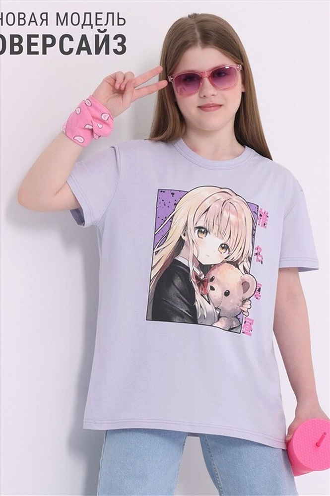 Оверсайз футболка для девочки выполнена из кулира - легкого хлопкового полотна. Изделие прямого покроя с короткими рукавами и округлым вырезом горловины, украшено дизайнерским принтом. Уход: только машинная стирка (руками не стирать!) при температуре 40 градусов, без предварительного замачивания. Изделия с печатью перед стиркой необходимо вывернуть на изнаночную сторону. Материал: кулир