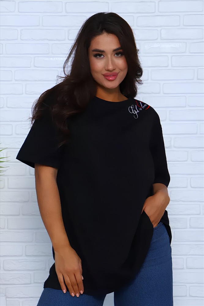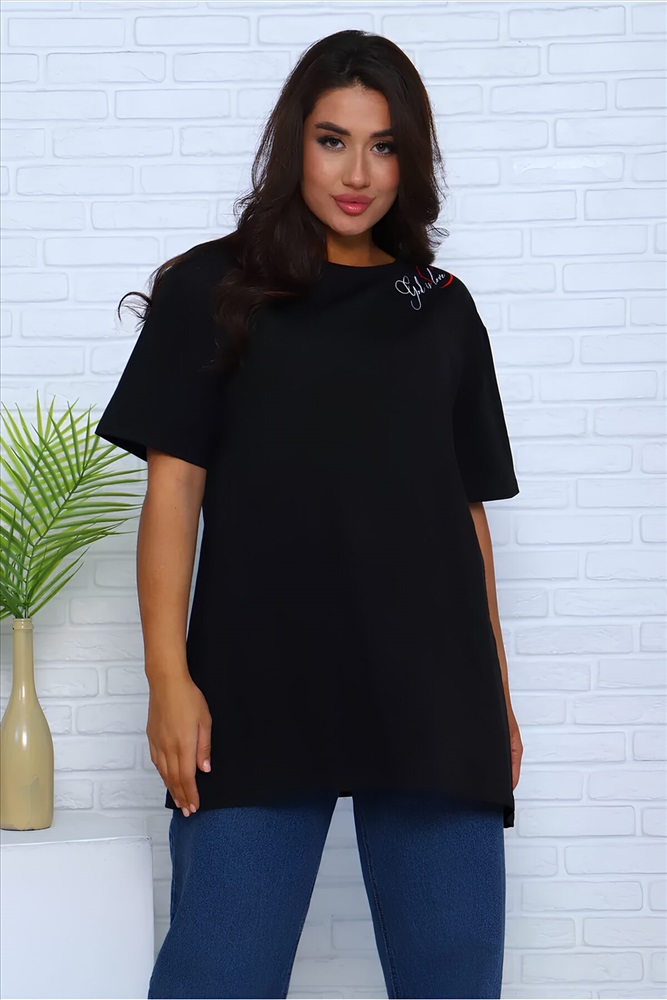 Футболка удлиненная, расширенная внизу, для высоких футболка, для миниатюрных девушек подойдет как короткое платье.