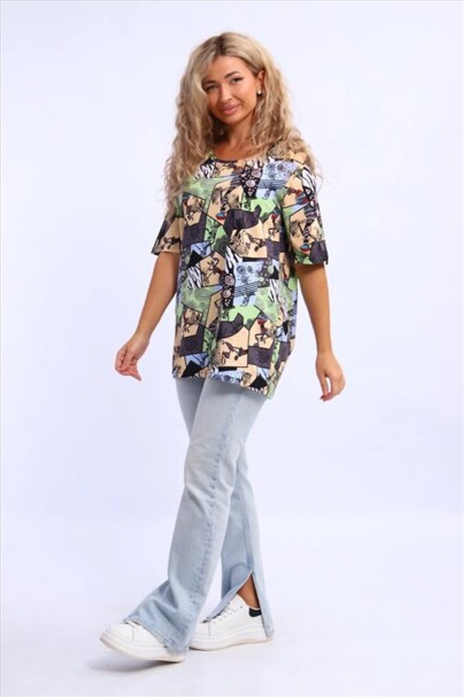 Производитель: НАТАЛИ ID товара: 1214780 Состав: Хлопок 100% Сезон: Весна/Лето Длина: Средняя Фасон: Свободный Рукав: Короткие Вырез горловины: Округлый Рисунок: Абстракция Декоративные элементы: Принт Основная ткань: Хлопок Стиль: Повседневный Вид ткани: Кулирка Страна бренда: Россия Страна производства: Россия