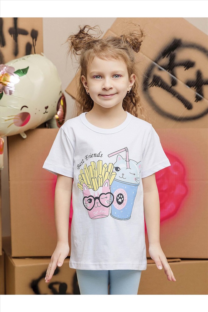 Страна производства: Россия Футболка для девочки с коротким рукавом белая из натурального хлопка. Важный элемент гардероба, особенно в летний период и для повседневного ношения дома или в детском саду. Детская футболка с принтом изготовлена из 100% хлопка, что обеспечивает комфорт и безопасность для кожи.